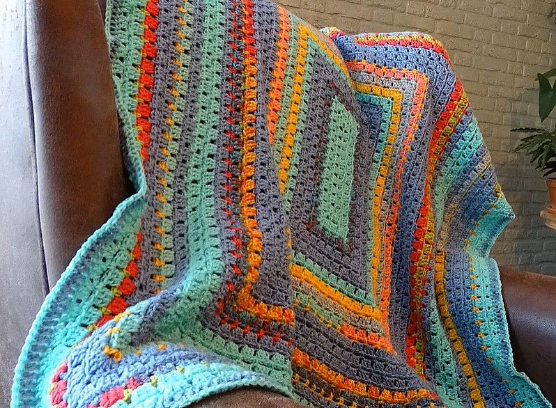 Bij Vonnes Creaties vond ik een andere manier van de 1e rij rondom, namelijk aan de andere kant de 3 stokjes haken tussen de 3 stokjes van de vorige toer, dus helemaal in de 'Granny stijl':